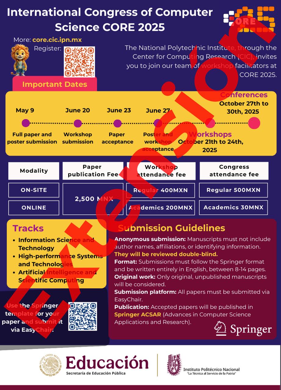 Para información sobre cómo convertirse en patrocinador del Congreso CORE 2025, por favor contacte a: core@cic.ipn.mx